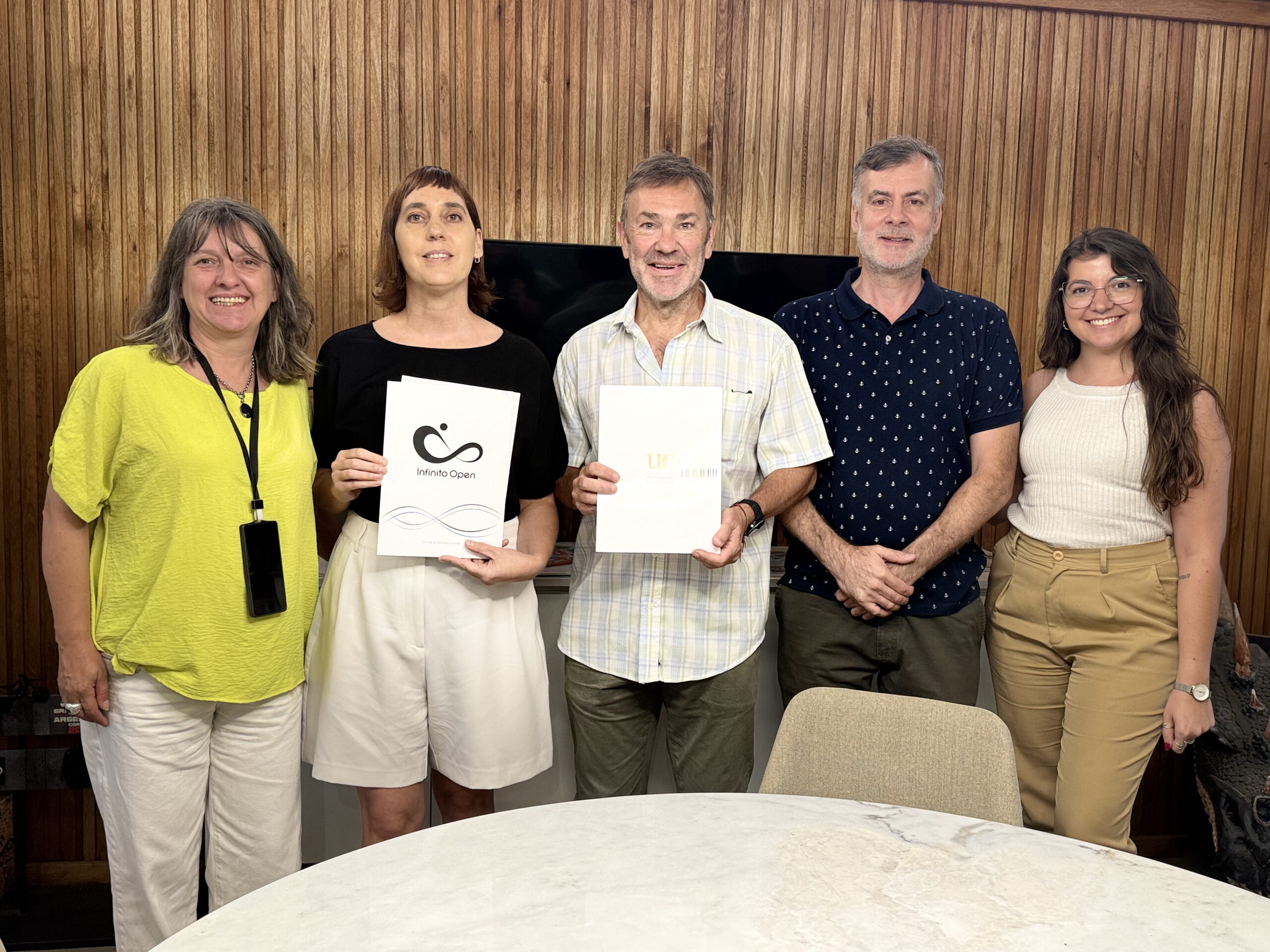 El lunes 29 de diciembre de 2025 se firmó el Convenio Específico entre la Facultad de Arte y Diseño y la empresa Infinito Open, que da marco a la implementación del proyecto de capacitación “Herramientas Escénicas para la Comunicación Laboral – Megaparque Infinito Open”, destinado al personal de la empresa.