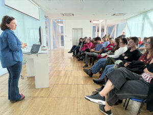 Durante la charla, el equipo curatorial presentó los principales hallazgos de la investigación que dio origen a la muestra, explicando el enfoque adoptado para reconstruir la historia de estos eventos a partir de la participación de artistas y otras mujeres claves en su desarrollo. También se expusieron los criterios de selección de obras y documentos, así como los desafíos enfrentados durante el proceso.
