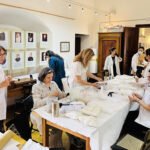 Acompañadas por la docente especialista y el equipo de adscriptas, las estudiantes trabajaron directamente sobre piezas del siglo XIX, entre ellas puntillas, paños de altar, accesorios y vestiduras religiosas que forman parte del acervo histórico del museo.