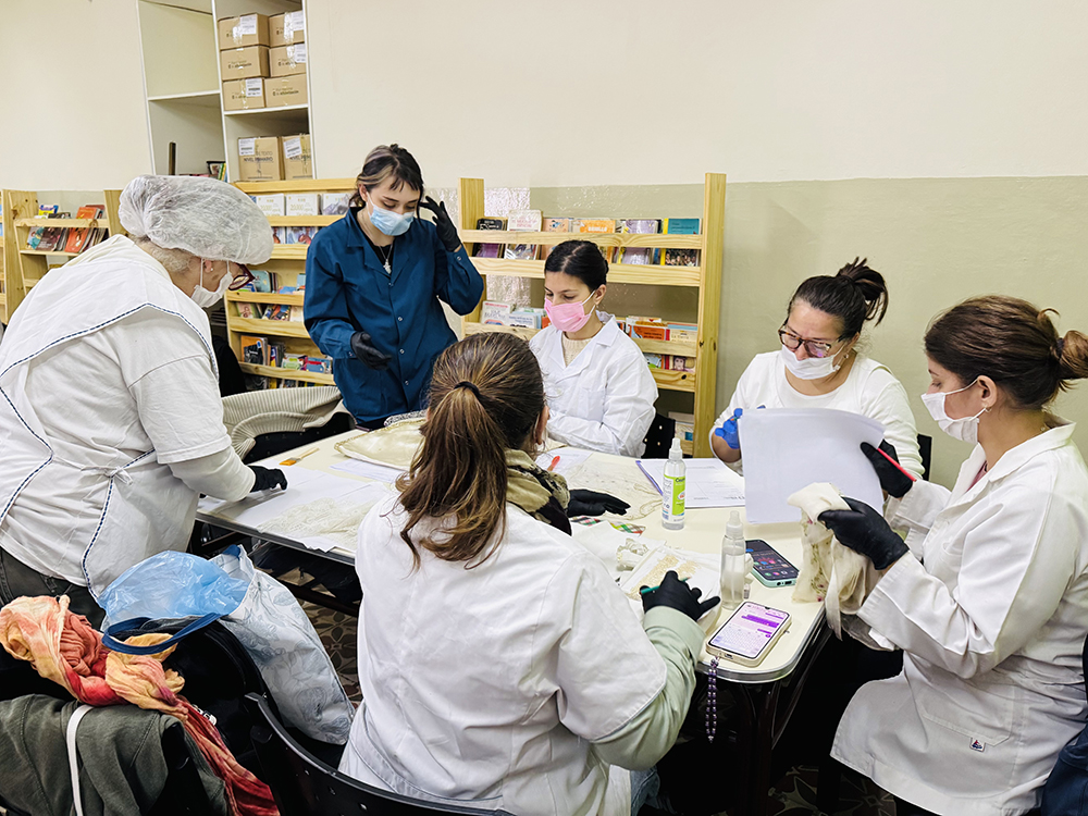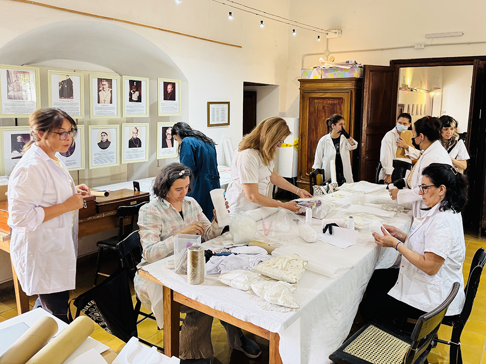 Acompañadas por la docente especialista y el equipo de adscriptas, las estudiantes trabajaron directamente sobre piezas del siglo XIX, entre ellas puntillas, paños de altar, accesorios y vestiduras religiosas que forman parte del acervo histórico del museo.