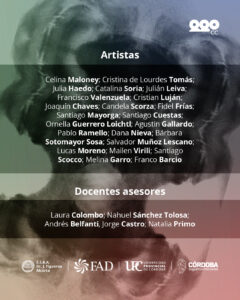 Celina Maloney; Cristina de Lourdes Tomás; Julia Haedo ; Catalina Soria; Julián Leiva; Francisco Valenzuela; Cristian Luján; Joaquín Chaves; Candela Scorza; Fidel Frías; Santiago Mayorga; Santiago Cuestas; Ornella Guerrero Loichtl; Agustín Gallardo; Pablo Ramello; Dana Nieva; Bárbara Sotomayor Sosa ; Salvador Muñoz Lescano; Lucas Moreno; Mailen Virili; Santiago Scocco; Melina Garro; Franco Barcio.